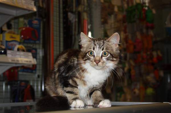 Не дикий, спокойный, ласковый котенок. Привезен из садоводства п. им. Морозова. Котенок клинически здоров.